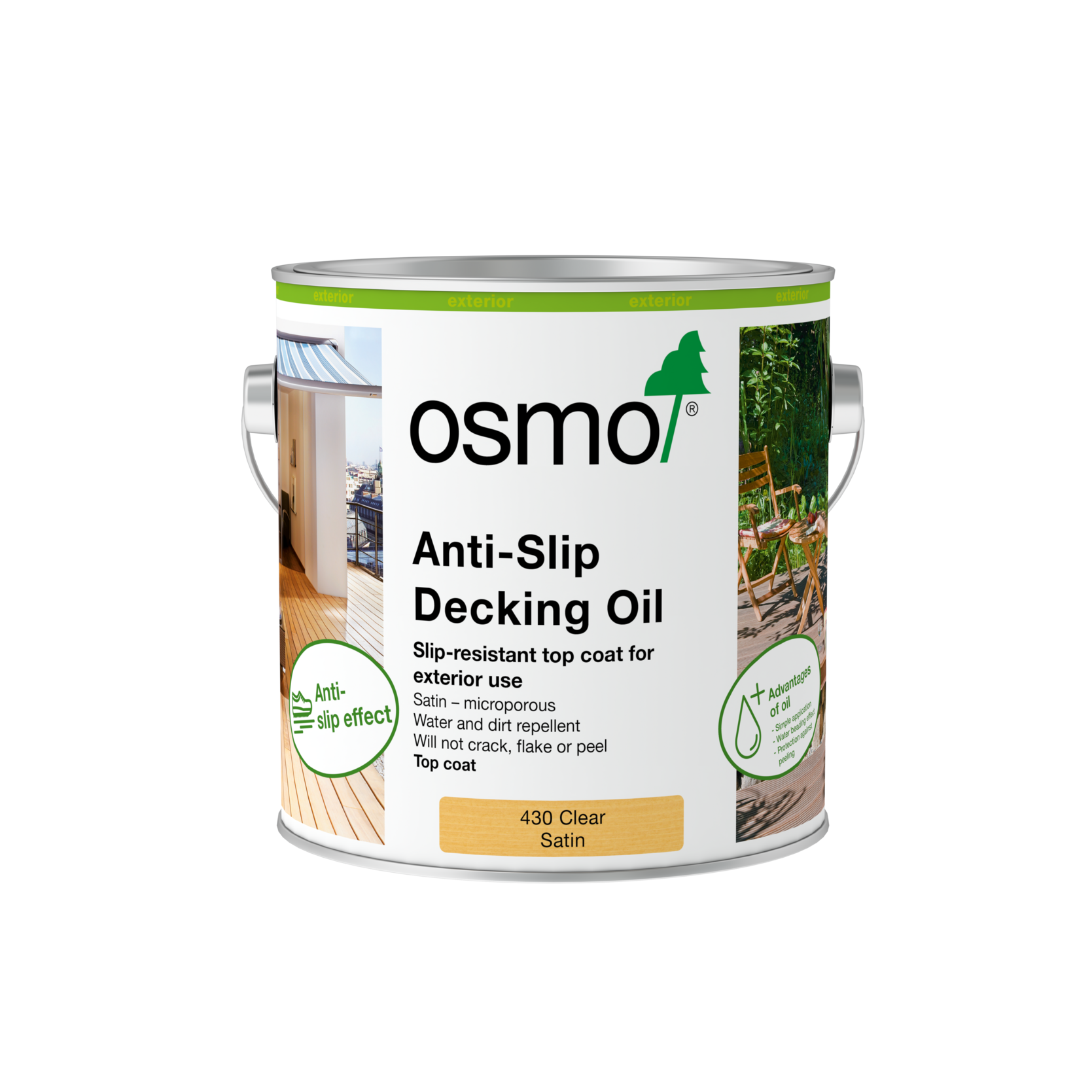 A 2 coat application, this product is designed primarily as an anti slip finish for use in commercial situations such as an exterior timber deck attached to a cafe, which may become wet and slippery, or any area where an anti slip finish is required, such as around a swimming pool etc. Osmo Anti Slip Decking Oil 430 offers no UV protection and the finish will need to be reapplied every 2-3 months in areas which are fully exposed to the weather.