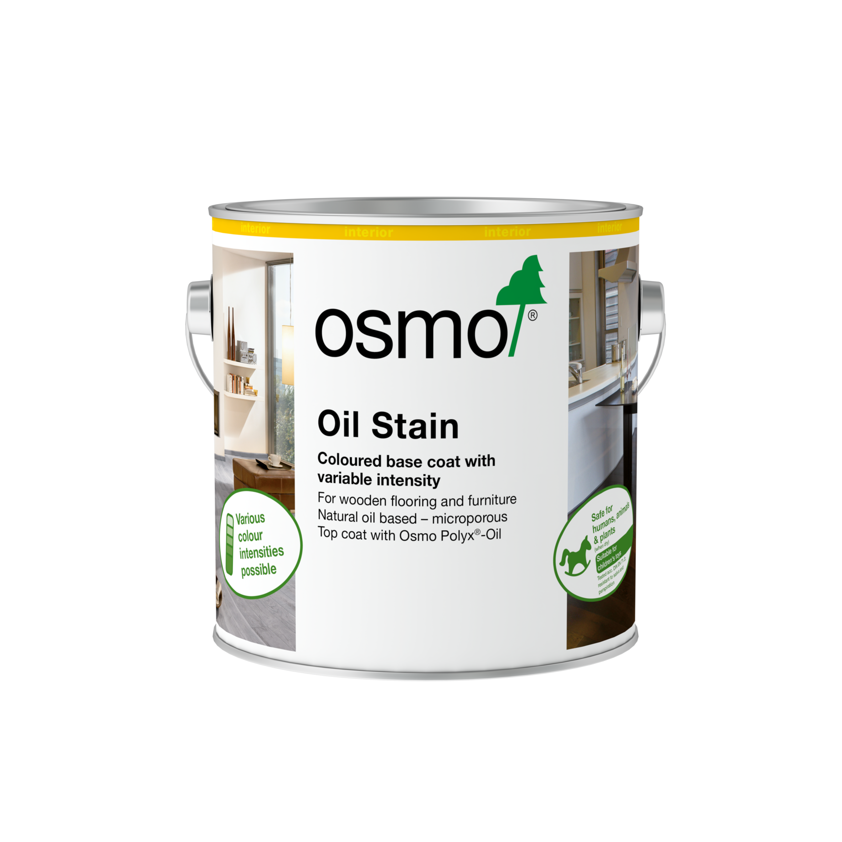 Osmo Oil Stain is the recomended oil stain for colouring timber flooring. It is a transparent (one coat) or intensive (2 coats) finish, which requires one or two top coats of Polyx Oil. The image below is of 3514 Graphite, showing the transparent and intensive effect.