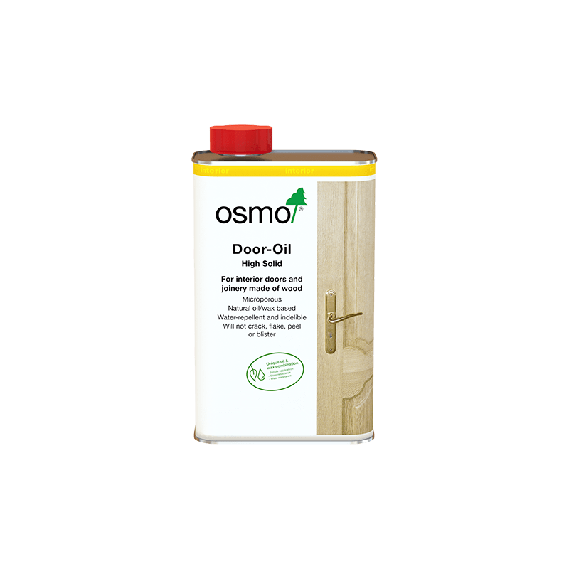 Untreated wood in its original form has a light, pale character from its natural ‘raw’ appearance. Sanded wood also has the same effect. Osmo Door-Oil Raw Matt 3033 is designed to retain this appearance by using a small amount of white pigment to neutralize the permanent ‘wet-look’ that develops after application of a clear finish.